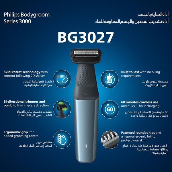 ΞΥΡΙΣΤΙΚΗ ΜΗΧΑΝΗ PHILIPS BG3027/05 BODY GROOMER/SHAVER BLUE BLACK HAP.177981 HAP.177981 PHILIPS PHILIPS ΞΥΡΙΣΤΙΚΕΣ ΜΗΧΑΝΕΣ
