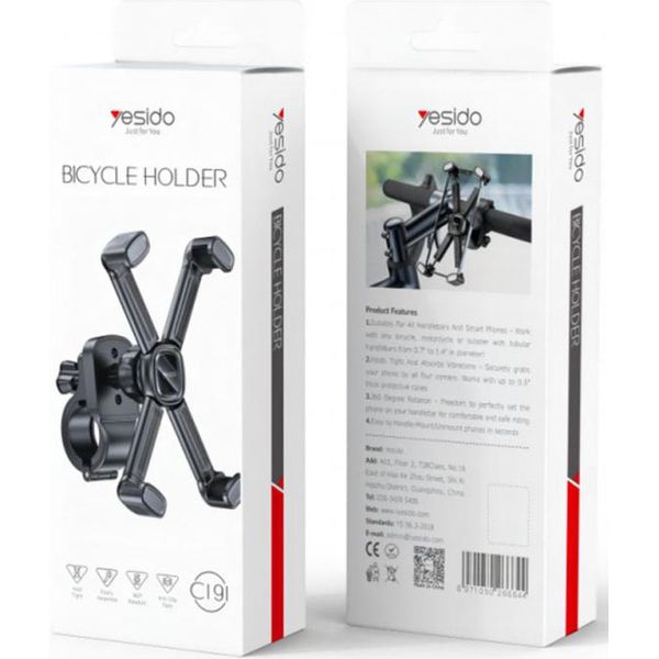 YESIDO C191 MOTORCYCLE HOLDER 4.5INCH - 6.8INCH BLACK TEL.240248 TEL.240248 YESIDO YESIDO BIKE HOLDER