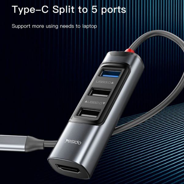 YESIDO HB22 USB-C HUB 5IN1 GREY (PER.620675)