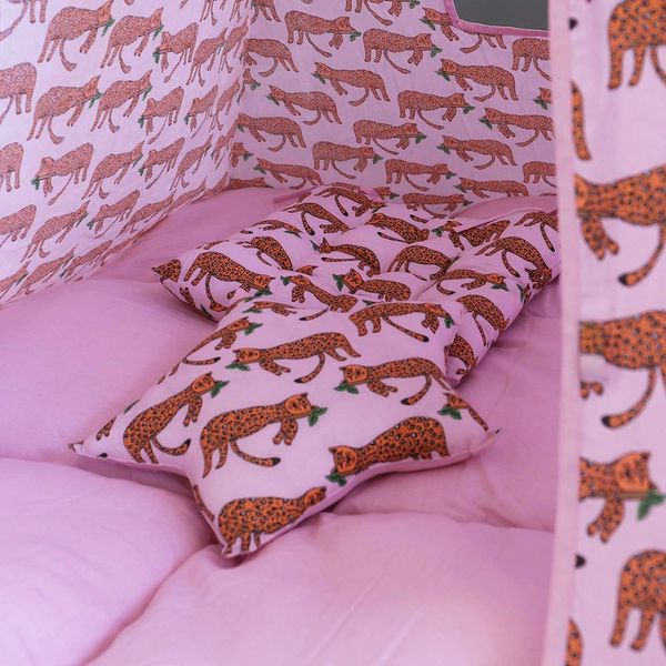 Κατασκευασμένες από φυσικά υλικά, με ένα γερό ξύλινο σκελετό, βαμβακερά υφάσματα και ένα έξτρα παχύ και αφράτο μαξιλάρι βάσης δημιουργούν το πιο ζεστό καταφύγιο για την φαντασία του παιδιού σας. Να μην ξεχάσουμε και τα δύο ακόμη μαξιλάρια, το ένα σε τετράγωνο και το άλλο σε σχήμα αστεριού, για ύπνό ή και για μαξιλαροπόλεμο!