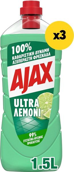 ΥΓΡΟ ΚΑΘΑΡΙΣΤΙΚΟ AJAX ULTRA ΛΕΜΟΝΙ 4,50ΛΤ(3Χ1,50ΛΤ)