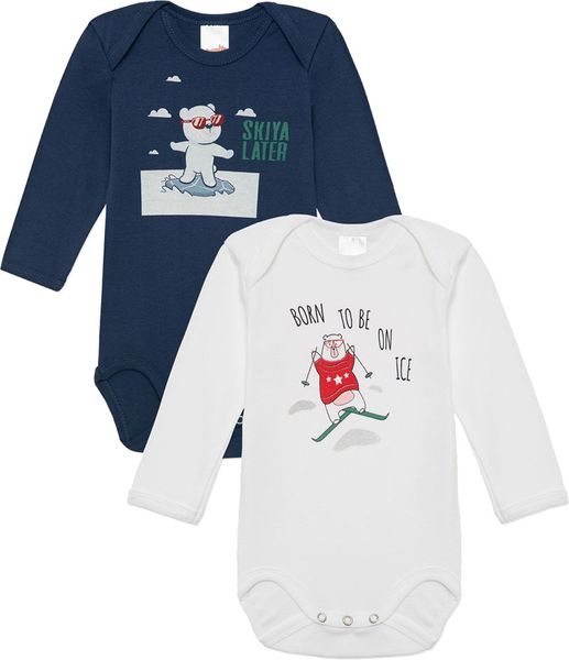 Το σετ αποτελείται από δύο μακρυμάνικα ζιπουνάκια που κλείνουν με κόπιτσες στο κάτω μέρος για εύκολη εφαρμογή.